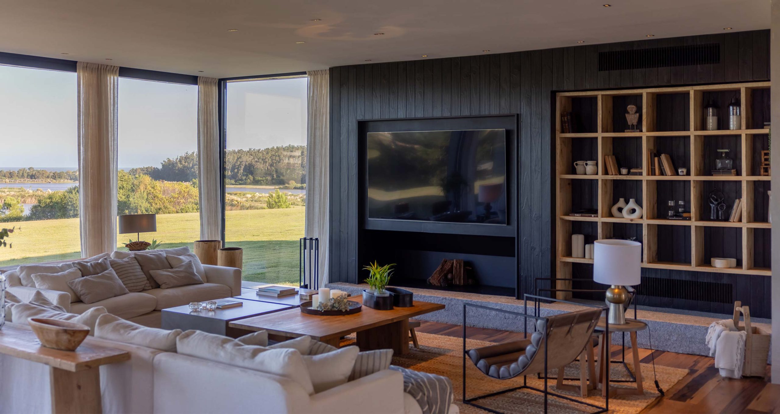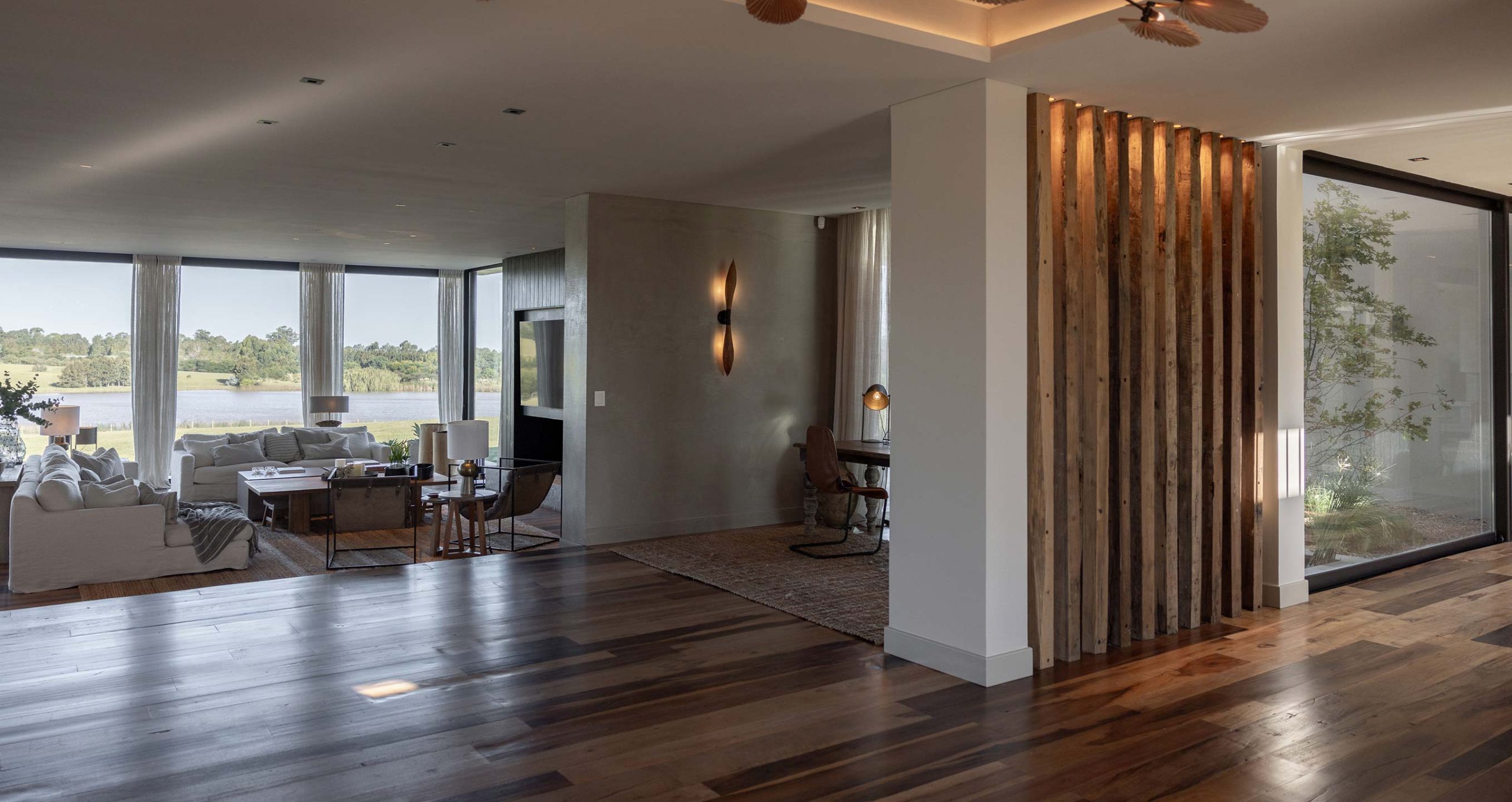 Arquitectura de marcada horizontalidad que integra el espacio interior con el exterior, potenciando la relación con el entorno.